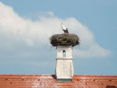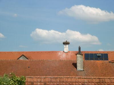 Auf dem Dach des Gasthauses Pfanzelt lebt der berühmte Langengeislinger Storch.